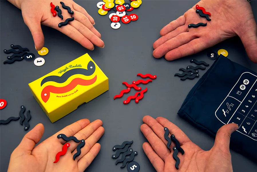 Customer Support407-951-5822In Wriggle Roulette, players take turns reaching into a bag filled with eel- and snake-shaped wooden pieces, trying to pull out as many eels as possible — but if the number of snakes grabbed by all players exceeds the limit, a "snake outbreak" occurs, and the player who grabbed the most pieces loses all of their eels.