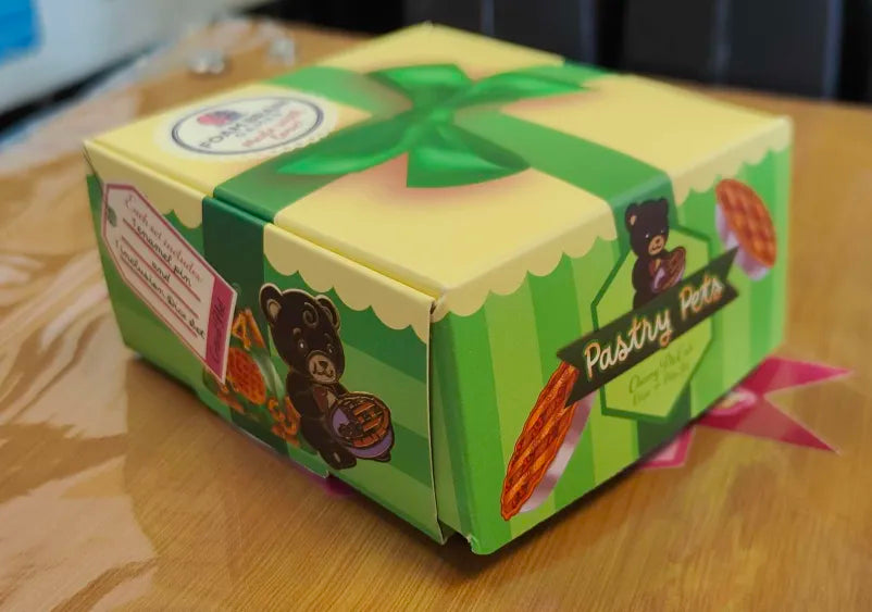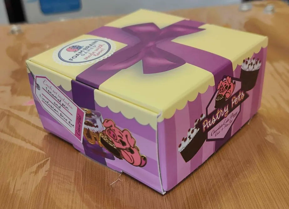 Customer Support407-951-5822These dice sets have a set of inclusion dice, an enamel pin, and an "adoption form" for your Pastry Pet!