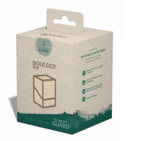 Developed and produced in Germany, this handy and solid Boulder 100+ with super-easy opening consists of 97% renewable resources, with a FSC certified grass paper packaging. The deck case is recyclable and holds up to 100 double-sleeved or 120 single-sleeved cards when using Ultimate Guard Sleeves.
