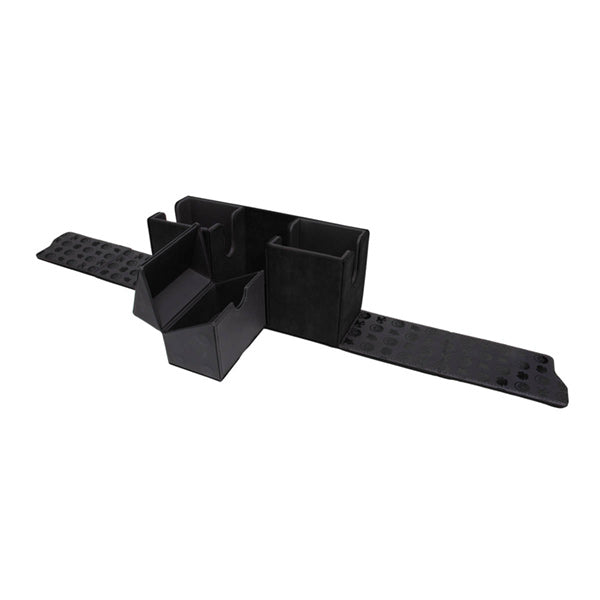 • 2x compartments fit 100-card decks and the fold-out center compartment holds either a 75-card deck or tokens, dice, coins, or other small gaming accessories