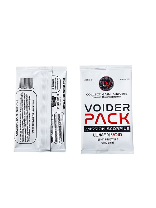 Customer Support407-951-5822Learn about the Voiders on Mission Scorpius. Collect all 4 voider cards to expand your Lumen Void experience. These cards are a real wild card and can alter the course of the game. Use the 2 Voider cards you receive to discover more about the voider crew and take advantage of their wild attributes to boost variance and experience points throughout the game.